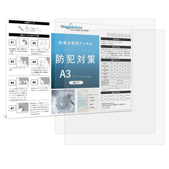 Made of highly transparent PET material, this product boasts excellent emergency protection performance. When extreme natural disasters such as typhoons, earthquakes and tsunamis strike, it can be quickly applied as an emergency measure for residential window glass and furniture glass. Simply install it in a rice-shaped pattern, and it will effectively prevent the risk of splattering when glass shatters.